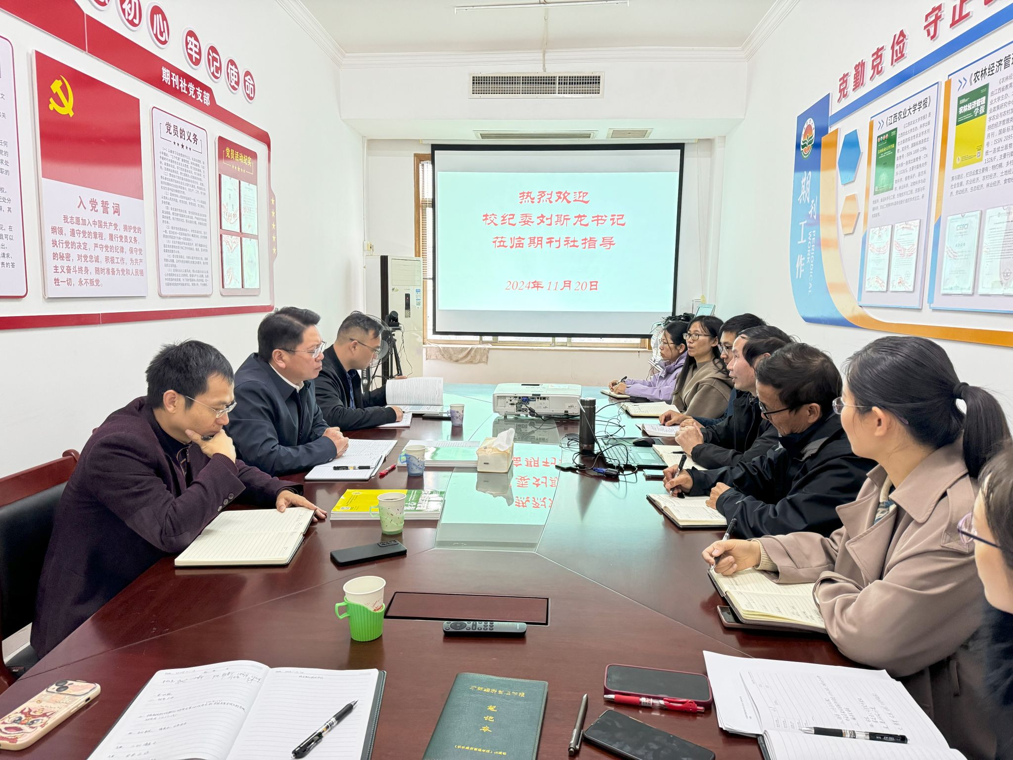 11月20日下午,校党委委员、纪委书记刘斯龙深入期刊社考察调研,校纪委副书记郭军海、校纪委综合办公室副主任皮芳辉陪同参加。期刊社全体人员参与调研座谈会。