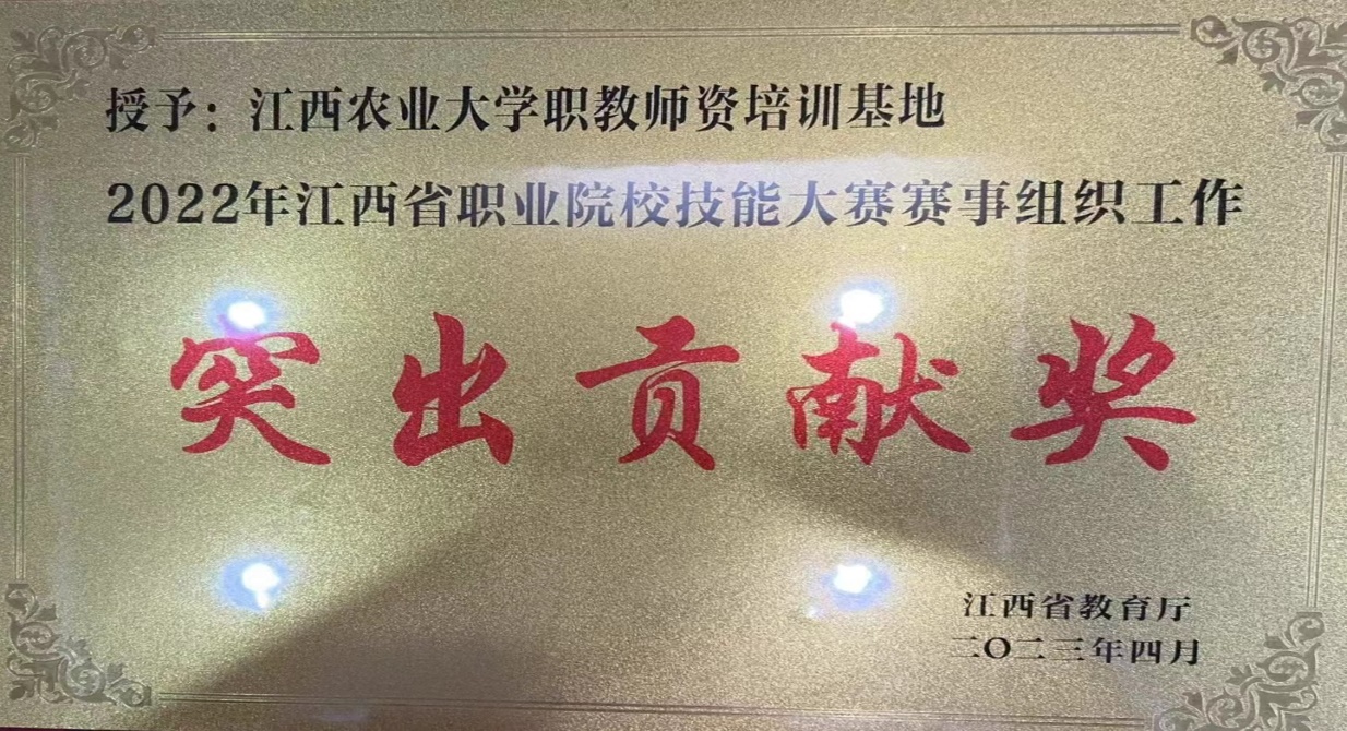 近日,江西省教育厅发文对2022年全省职业院校技能大赛“突出贡献”单位和“优秀工作者”进行表彰,我校职教师资培训基地荣获全省职业院校技能大赛赛事组织工作“突出贡献奖”,基地钱丹妮被评为“优秀工作者”。