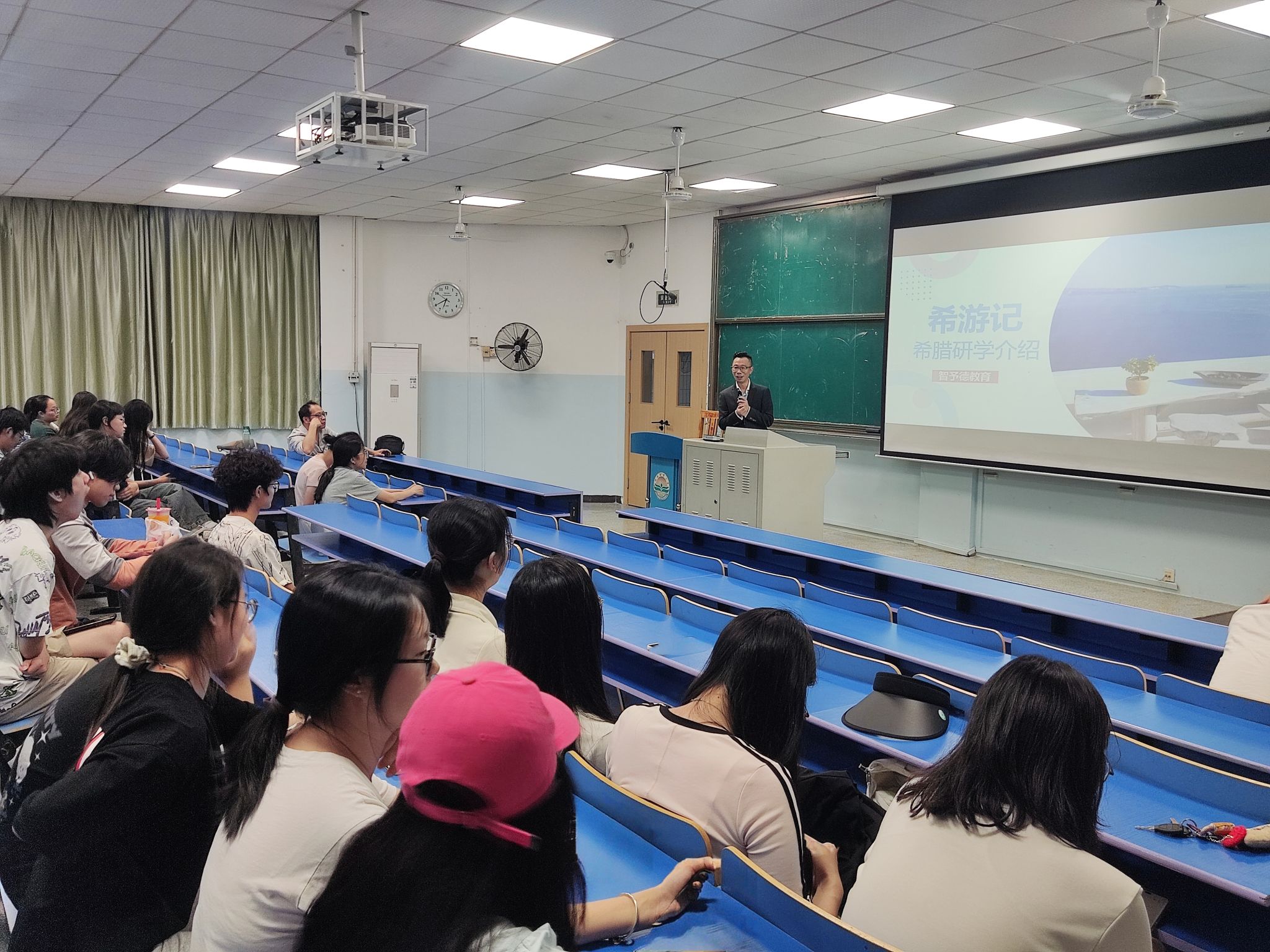 宣讲会分两个时段有序开展不同项目的介绍。首先开展的是希腊项目宣讲会,项目负责人从希腊的历史文化、教育特色切入,详细介绍了雅典农业大学的课程设置、学习模式、访学安排以及在当地的生活体验。通过丰富的图片、生动的案例,将希腊独特的学术氛围与文化魅力生动展现,让同学们仿佛身临其境。在提问环节,大家纷纷举手,围绕办理签证、语言要求等问题踊跃提问,负责人一一耐心解答,现场互动热烈。
