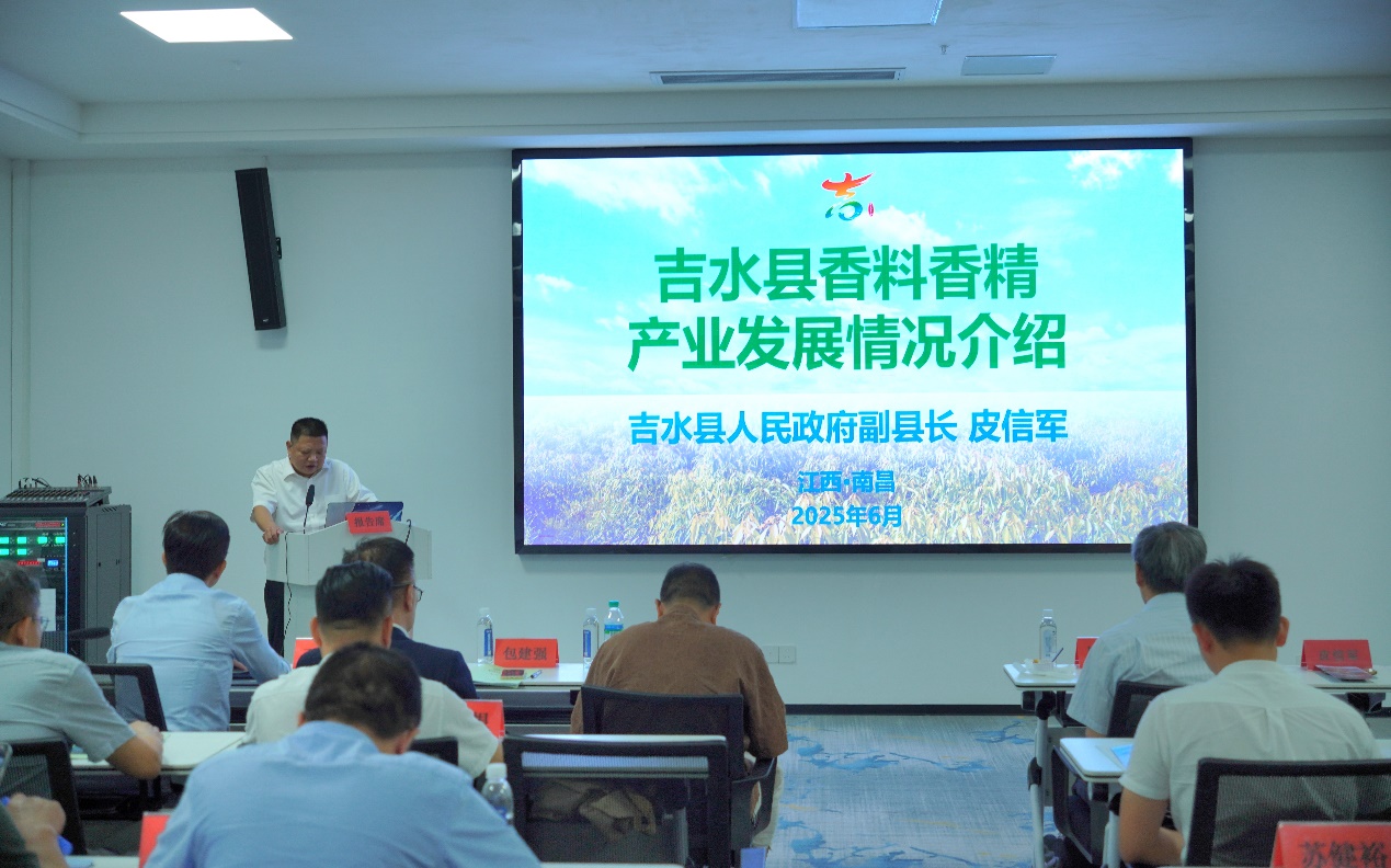 论坛期间,江西省吉水县人民政府也开展了招商引资活动,县政府副县长皮信军同志介绍了吉水县香料香精产业发展情况,旨在深化产业链合作,推动香料产业高质量发展。