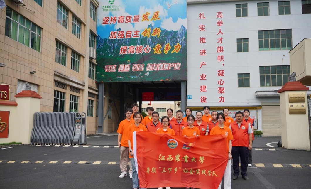 为助力乡村振兴,深化产学研融合。6月29日-7月10日,中心副主任、植物天然产物与林产化工研究所副所长陈尚钘教授等一行带领江西农业大学“三下乡”社会实践营队--龙脑樟产业乡村振兴团前往吉安市中香天然植物有限公司,开展“三下乡”实践活动,中心范国荣研究员、彭大勇博士和全体社会实践营队队员参加了活动,以专业知识赋能产业发展,用青春行动书写乡村振兴答卷。学院党委副书记刘彩云参加了活动,吉安市中香天然植物有限公司董事长罗秋根,研发总监张华锦热情接待了“三下乡”人员一行。