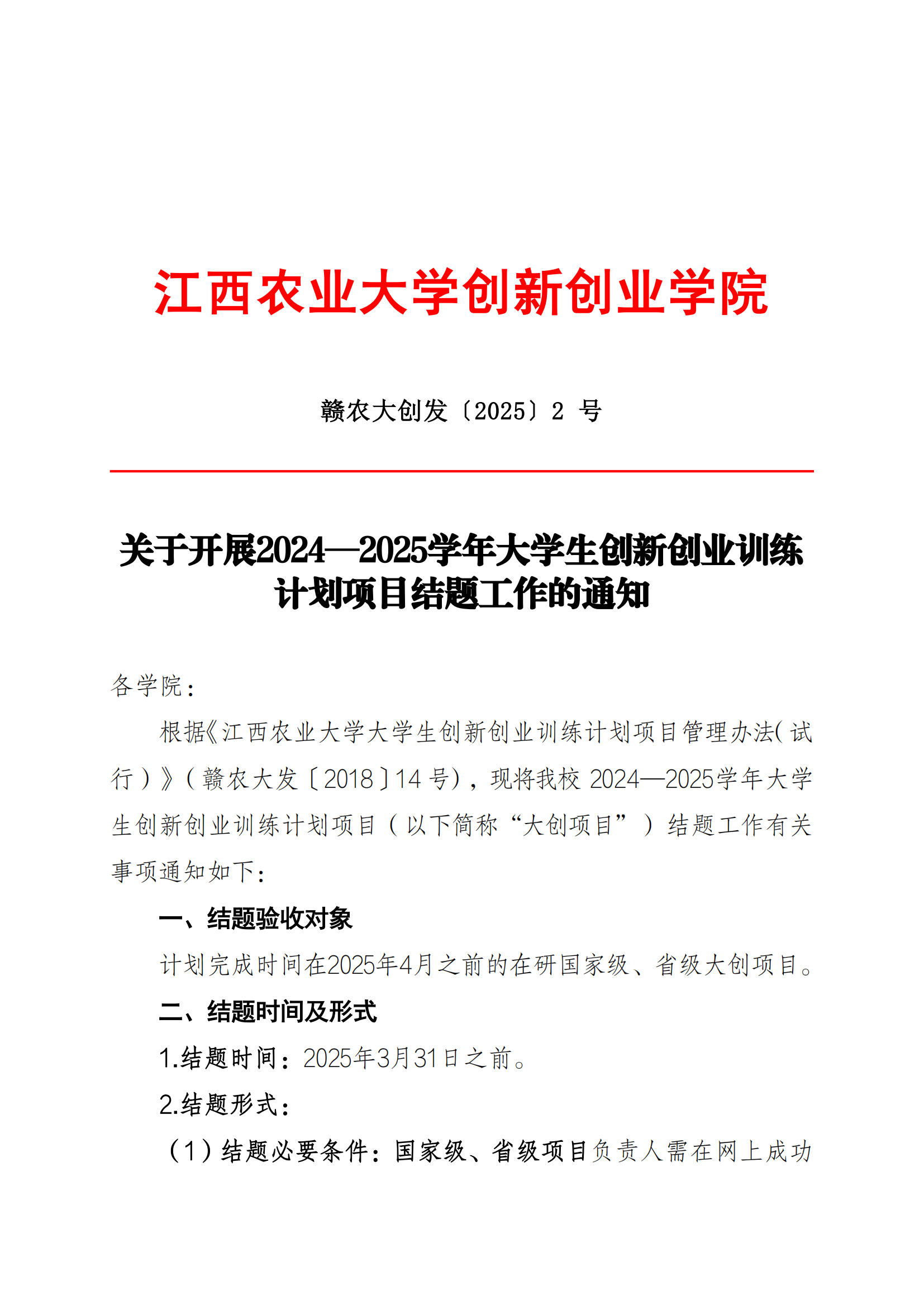 关于开展2024-2025学年大学生创新创业训练计划项目结题工作的通知
