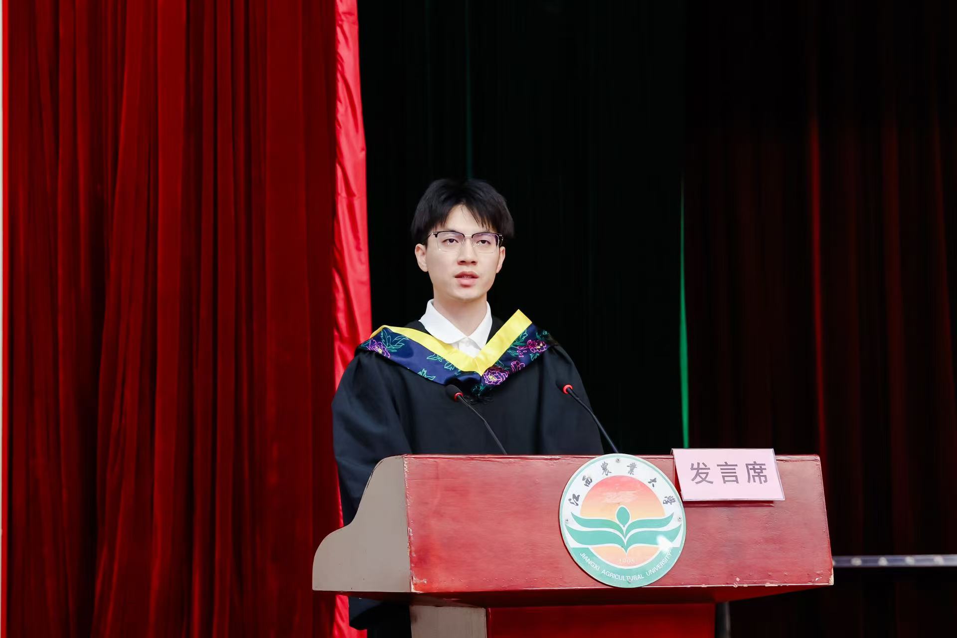饶超毅深情发言,母校四年,“团结、勤奋、求实、创新”校训已融入我们血脉。底色在此铸就,梦想在此启航。在人工智能、大数据浪潮席卷全球的当下,我们这一代的选择不仅关乎个人前途,更与国家“科技自立自强”的战略紧密相连,要扎根中国大地,服务国家繁荣昌盛,在中国式现代化建设中作出江农人的应有贡献。愿我们的母校薪火相传,芳华永驻;愿恩师们桃李满园,身体康健;愿每一位同学此去前程似锦,归来仍是少年!
