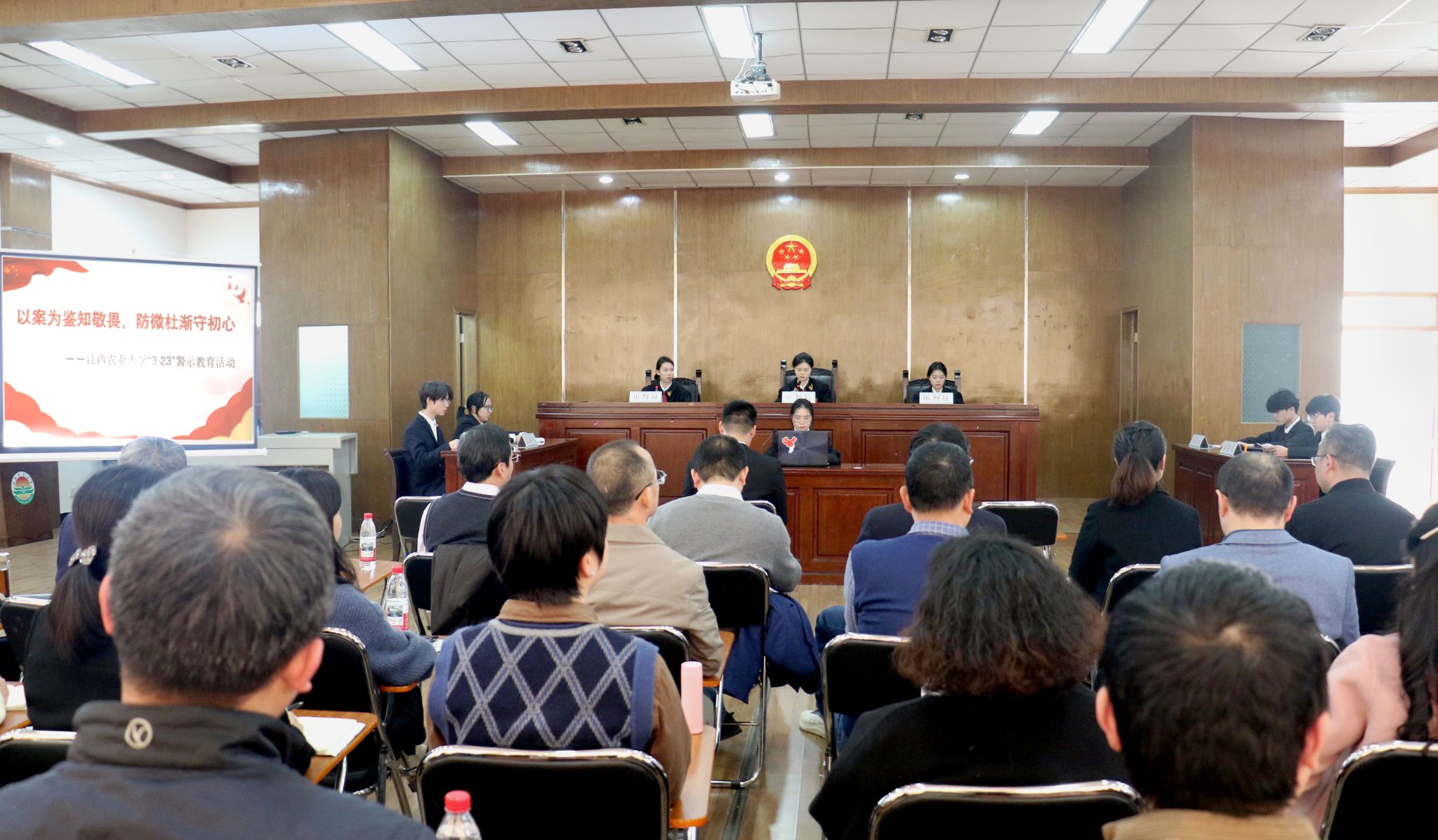 为扎实开展深入贯彻中央八项规定精神学习教育,不断巩固深化党纪学习教育成果,教育引导党员干部时刻保持“赶考”清醒,履职尽责、担当作为,3月21日,学校组织开展旁听模拟法庭警示教育活动。省纪委省监委驻校纪检监察组组长、校党委委员、纪委书记刘斯龙出席活动,驻校纪检监察组、人文与公共管理学院相关负责人和各单位分管财务工作负责人70余人到场观摩。